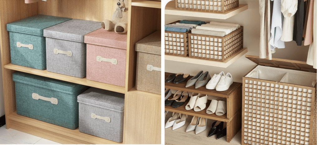 5. Las cajas tu mejor aliado: utiliza cajas bonitas que además de ser super útiles son muy decorativas. Estas cajas te servirán para guardar medias, pañuelos,… Puedes ponerlas dentro pero también fuera del armario. Un truco es identificarlas para así saber qué hay dentro o bien con nombre o con fotos o incluso con dibujos.