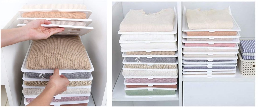 Pero si quieres que quede perfecto, este «invento» es espectacular, tendrás las prendas como jersey finos, camisetas o top, totalmente ordenador y será super sencillo elegir una prenda u otro. Se vende en Amazon