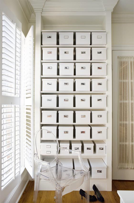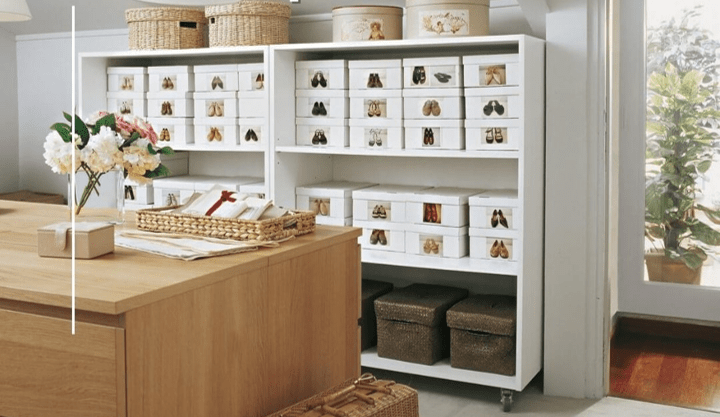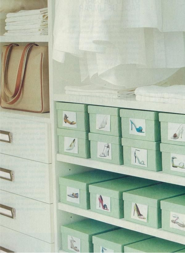 Si no tienes un espacio sólo para zapatos, lo mejor es guardarlos también en cajas y poner anotaciones en el exterior de lo que contienen, Si tienes una cámara instantánea, será buena idea hacerles una foto y pegarlas en el exterior, así con una «miradita» sabes lo que tienes.